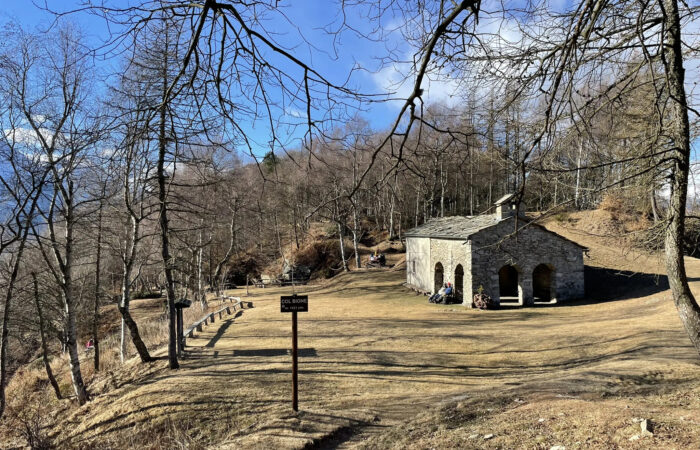 Verso le ore 12:30 giungeremo, per il pranzo al sacco, nei pressi del suggestivo pianoro di Col Bione dove sorge la Cappella dedicata alla Madonna della Neve, opera del coazzese Giovanni Picco Rosset e dei suoi compaesani nel 1901. Presso la chiesa un cippo e una lapide, posata nel 1985, ricordano i numerosi partigiani caduti in zona durante la Lotta di Liberazione.