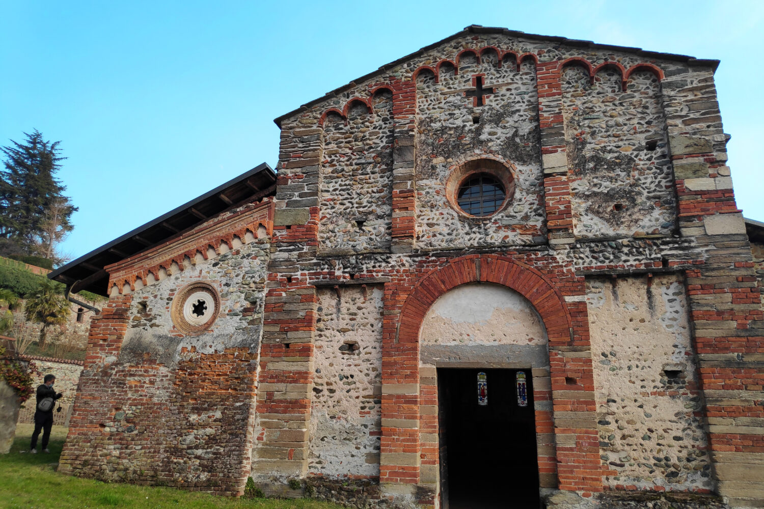 Di notevole rilevanza storica e artistica, la pieve fu eretta in stile romanico lombardo nel XII secolo, sulle rive del fiume Dora Riparia e dedicata a san Pietro, molto probabilmente come conquista dell’allora cattolicesimo romano lungo le vie romee.